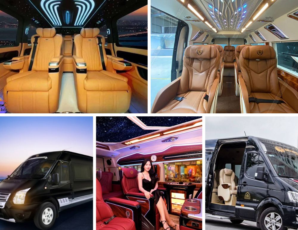 Phổ biến: Dcar Limousine, Autokingdom Limousine (độ trên nền Ford Transit/Hyundai Solati).