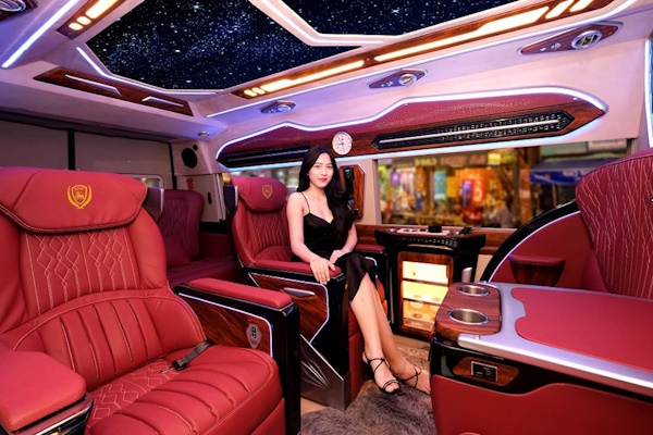 Xe Limousine 28 chỗ: Dòng xe đặc biệt được thiết kế lại từ xe 45 chỗ Hyundai Universe, lắp đặt hệ thống ghế VIP sang trọng, mang lại trải nghiệm thương gia trên mặt đất.