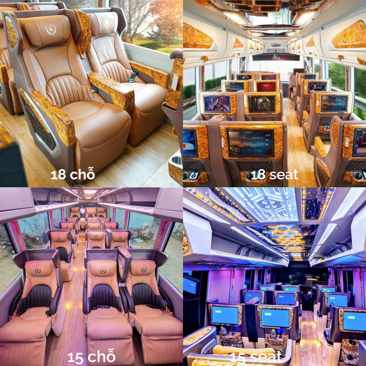 Limousine 18 chỗ trang bị ghế da massage, hệ thống giải trí 4K, theo tiêu chuẩn Ford Transit. Có tủ lạnh mini dung lượng 20 lít. Do đó, hành khách thư giãn suốt 300km. Bên cạnh đó, wifi tốc độ cao hỗ trợ làm việc.