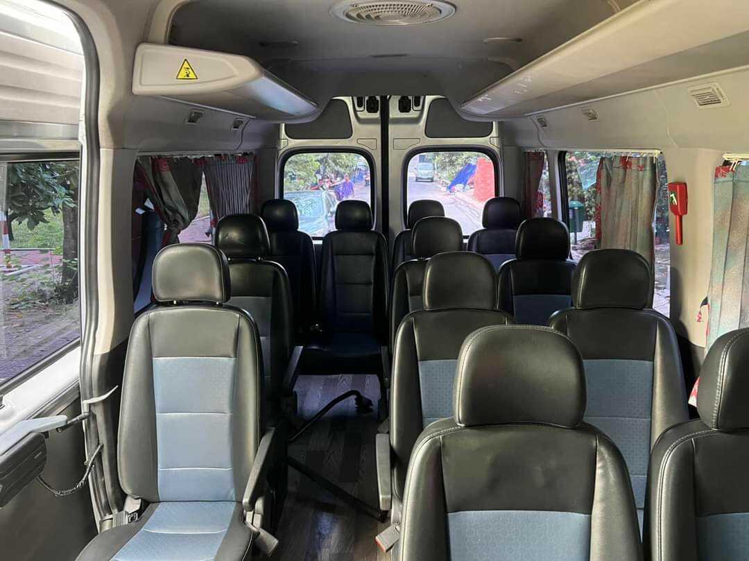 Xe 16 chỗ Ford Transit có động cơ diesel 2.2L, sức chứa 16 người. Khoảng cách ghế 700mm đảm bảo thoải mái. Theo Ford, model này đạt tiêu chuẩn khí thải Euro 5.